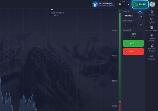 Cada previsão correta resulta em lucro - o montante da ordem de transação originalmente investido mais o lucro gerado (de acordo com a % de pagamento de ativos exibida) são automaticamente adicionados ao saldo da sua conta.